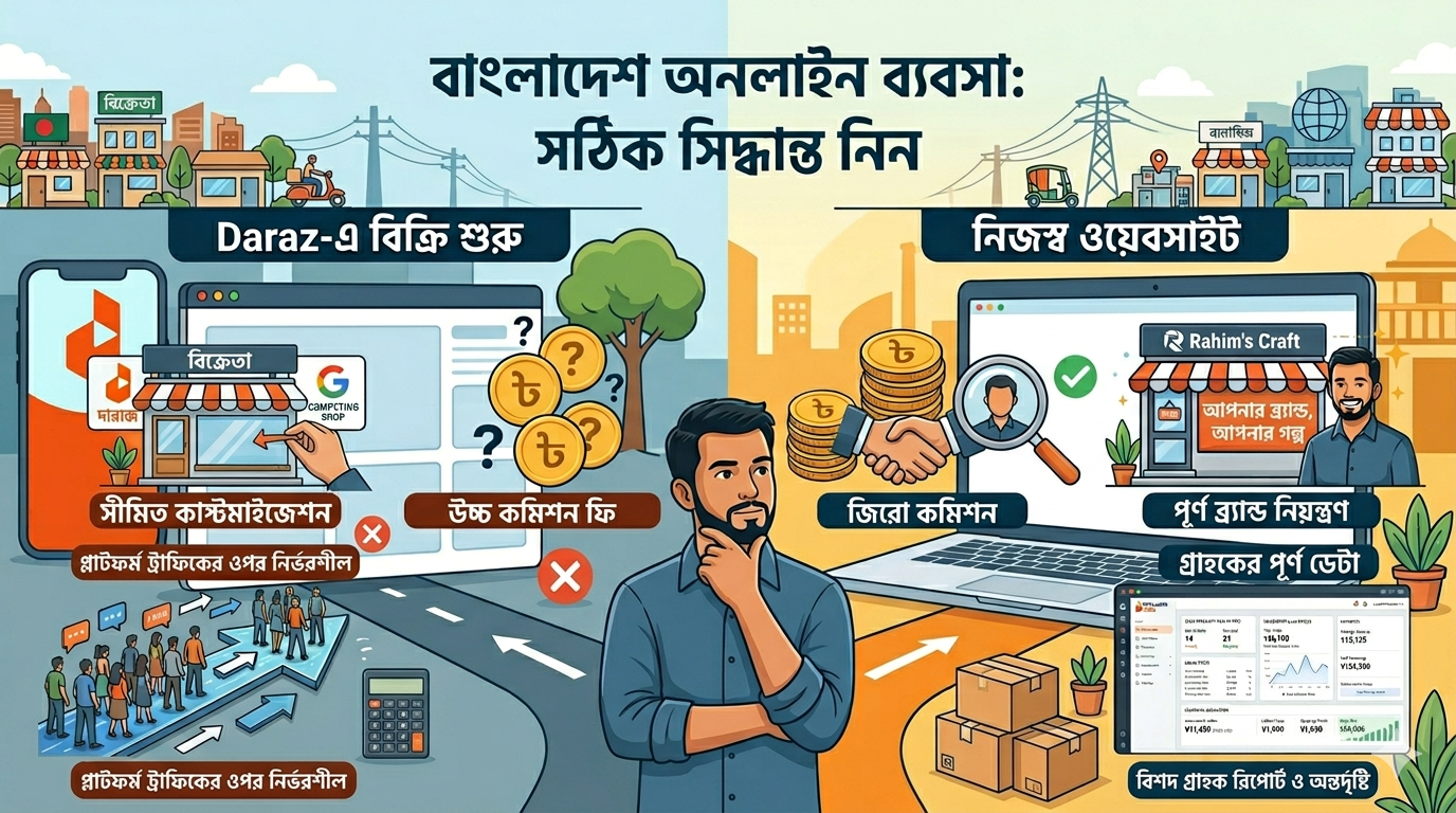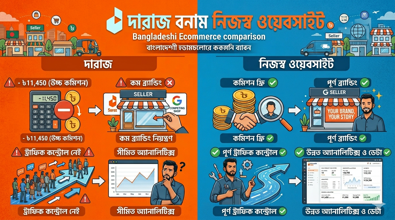 Daraz বনাম নিজস্ব ওয়েবসাইট: বাংলাদেশে কোনটা আপনার ব্যবসার জন্য সবচেয়ে লাভজনক? (একটি বাস্তব অভিজ্ঞতা + পূর্ণ তুলনা)